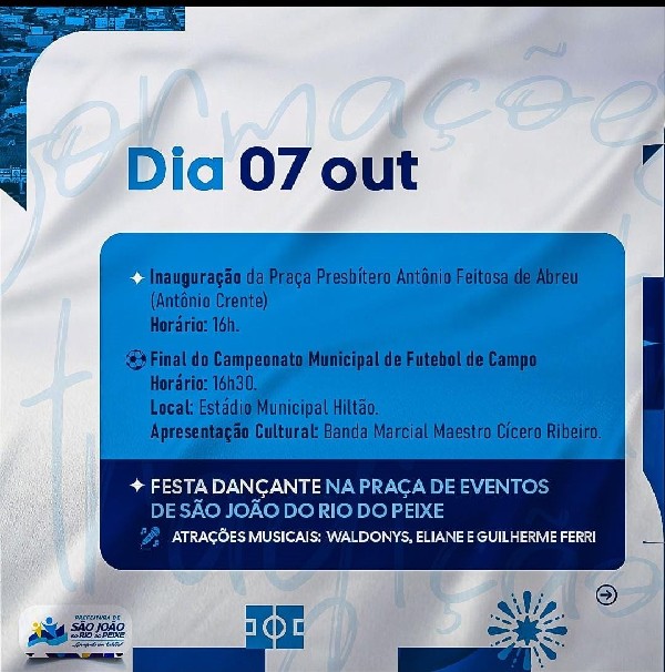 Venha participar desse momento especial conosco e homenagear a nossa cidade, relembrando o passado e fortalecendo o presente. Esperamos por você!. Acompanhe toda a nossa programa, curta e comenta! Não esquece de enviar para seu amigo(a).